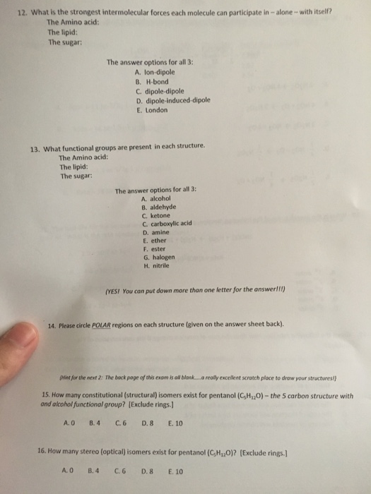 Solved 12 What Is The Strongest Intermolecular Forces Each Chegg Com