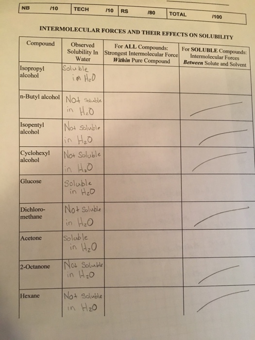 Solved Compound Observed Solubility In Water S Soluble Chegg Com