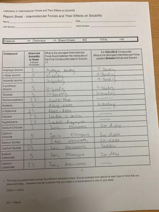 Solved Name Intermolecular Forces Date Pre Lab Questions 1 Chegg Com